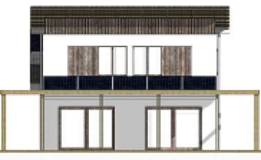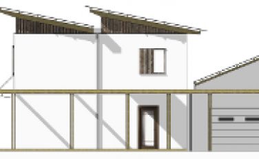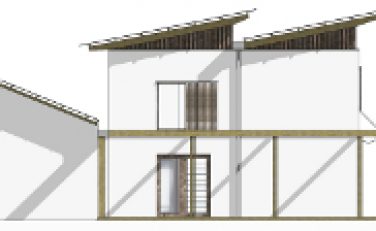 Passive energy results are delivered with appropriate placement and size of windows for beneficial solar gain. Clerestory windows admit north light to rear section of first floor. Thermal chimney effect is introduced to enhance summer night purging ventilation. Ceiling fans included to assist summer comfort needs. Cost effectiveness comes from high efficiency of layout and building fabric arrangement. All bedrooms in 3 bed layout are 4m x 4m. Partitioning placement options on first floor enable 1, 2 and 3 bed room layouts. High performance energy rating of building fabric is complemented by reduced embodied energy achieved with minimized materials use.
